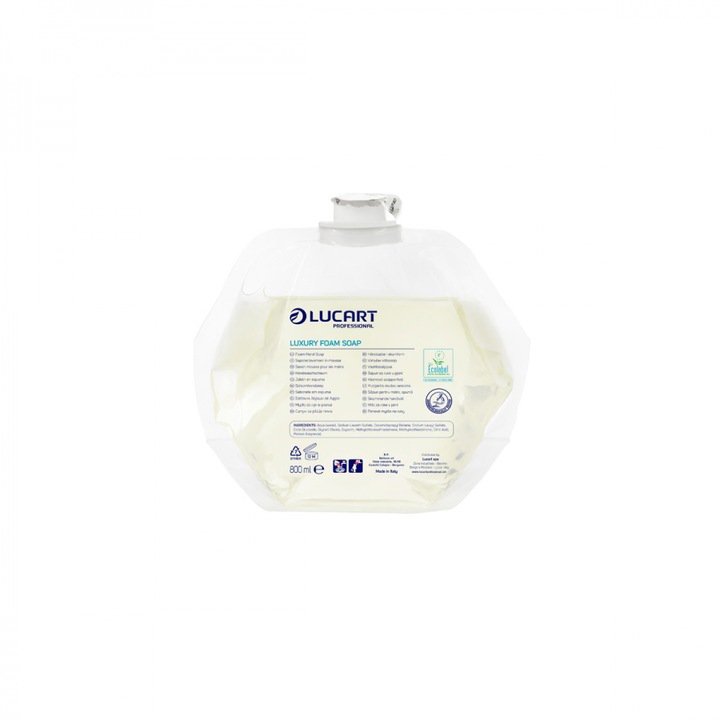Pěnové mýdlo Lucart Identity 892289R, 800 ml je náhradní náplň pro dávkovače Lucart Identity. Vytváří jemnou pěnu, která šetrně čistí pokožku při každodenním použití.