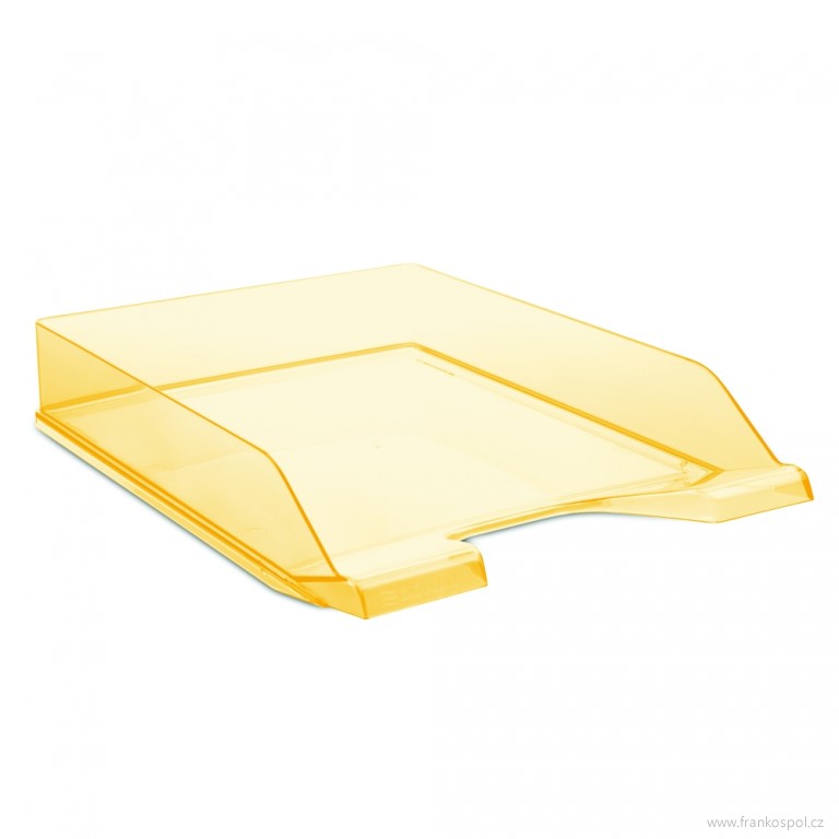 Pevný kancelářský odkladač pro organizaci dokumentů do formátu A4. Vyrobený z odolné kombinace polystyrenu a polypropylen - nárazu odolný, masivní. Snadné stohování na sebe nebo pomocí praktických zarážek kaskádově. Vnější rozměry: 254 x 60 x 346 mm, vnitřní rozměry: 244 x 43 x 325 mm. Barva: tranparentní oranžová.