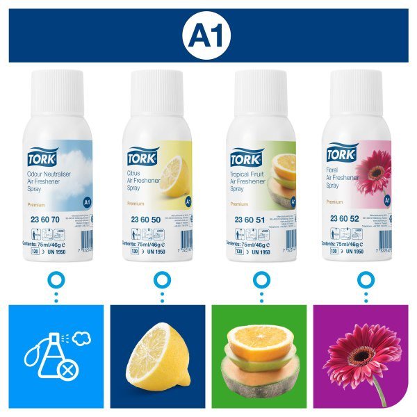 Zásobník Tork zajišťuje rovnoměrné provonění prostoru a snadnou údržbu při každodenním používání.