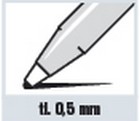 Plastové provedení, kovový klip a hrot, plastový úchop. Síla 0,5 mm. Mikrotužka