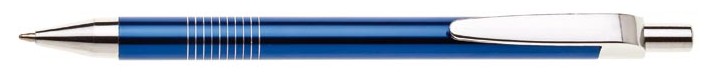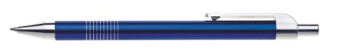 Kuličkové pero LAURIA je vyrobeno z hliníku. Má modré tělo se stříbrnými doplňky jako jsou špička, klip a cvakátko. Úchopová část má 10 stříbrných proužků po celém obvodu tužky. Náplň- X20, modře píšící.