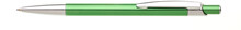 Kovová zelená propiska s lesklým povrchem a charakteristickou protáhlou špičkou. Špička i klip jsou pochromované.