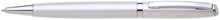 Hliníková propiska TORICO s otočným mechanismem v barvě matně stříbrné a lesklými stříbrnými doplňky. Náplň velkoobsahová, modře píšící.