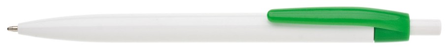 Plastové, kuličkové pero LIDO má bílé tělo a zelený klip. Má náplň X-20 (106mm), modře píšící.