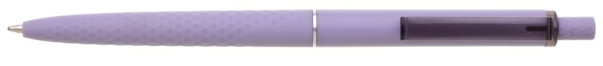 Tenká světle fialová propiska má 3D soft povrch ve spodní části, horní část propisky je hladká, vhodná pro umístění loga, Obě části odděluje tenký stříbrný kroužek. Klip je průhledný v barvě propisky. Kolekce DESIGN. Náplň X20 modře píšící.