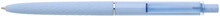 Tenká světle modrá propiska má 3D soft povrch ve spodní části, horní část propisky je hladká, vhodná pro umístění loga, Obě části odděluje tenký stříbrný kroužek. Klip je průhledný v barvě propisky. Kolekce DESIGN. Náplň X20 modře píšící.