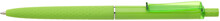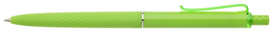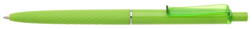 Tenká světle zelená propiska má 3D soft povrch ve spodní části, horní část propisky je hladká, vhodná pro umístění loga, Obě části odděluje tenký stříbrný kroužek. Klip je průhledný v barvě propisky. Kolekce DESIGN. Náplň X20 modře píšící.