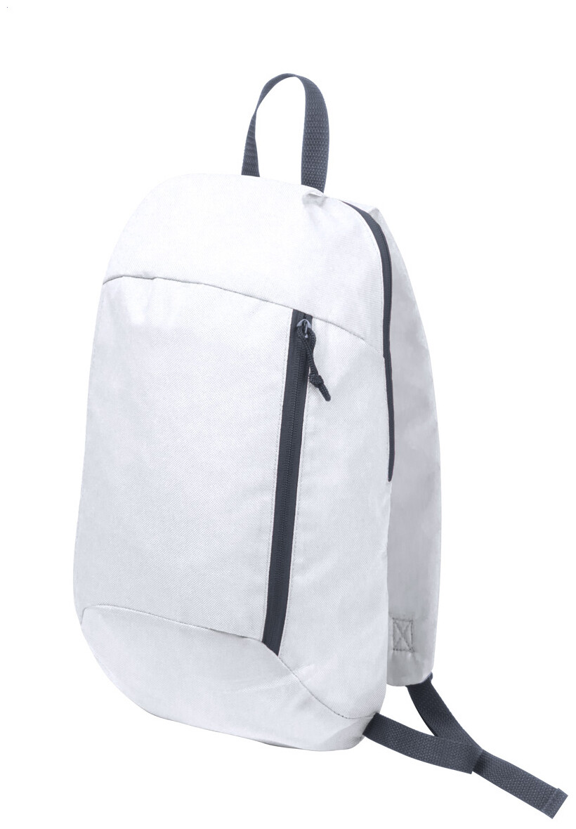 600D polyesterový batoh s vypolstrovanými zády, nastavitelnými popruhy a se zipem na přední kapse.