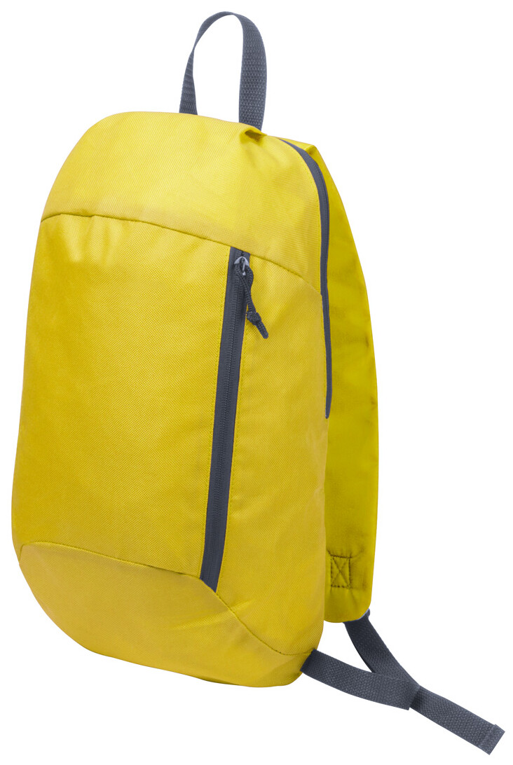 600D polyesterový batoh s vypolstrovanými zády, nastavitelnými popruhy a se zipem na přední kapse.