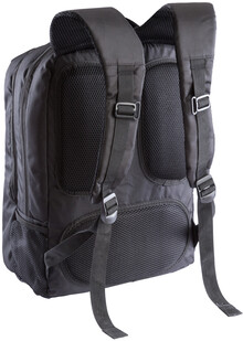 Batoh s mnoha přihrádkami na zip, vypolstrovanou přihrádkou na laptop (15"), vypolstrovanými zády a popruhy, 600D nylon.