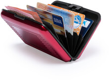 Hliníkový obal na kreditní karty se 6 přihrádkami s RFID ochranou.