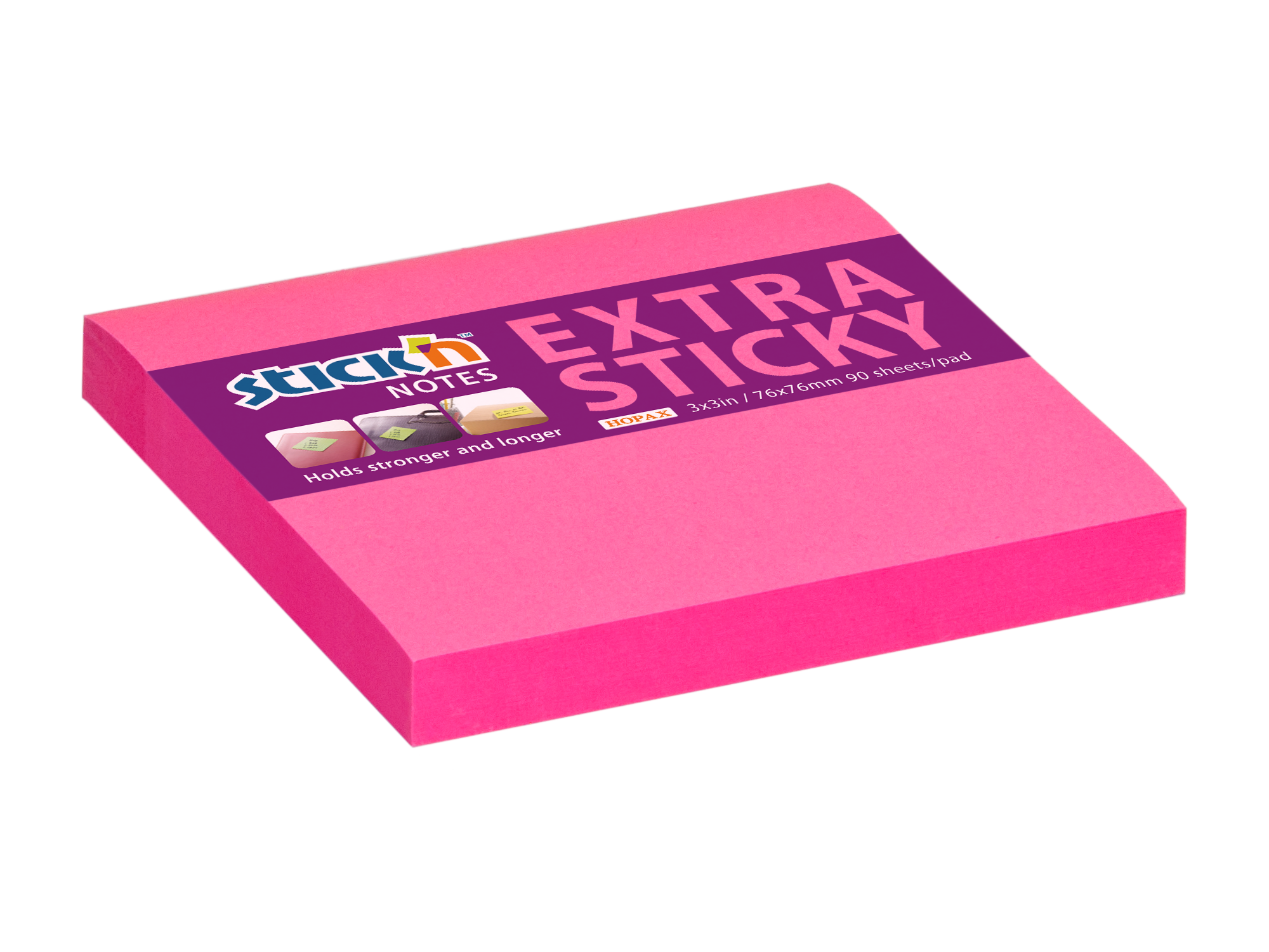Samolepicí bloček Stick'n by Hopax EXTRA STICKY, 76 x 76 mm, neon růžový, 90 lístků