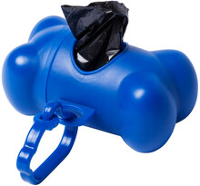 Plastový zásobník ve tvaru kosti s 15 pytlíky na psí exkrementy s karabinkou.