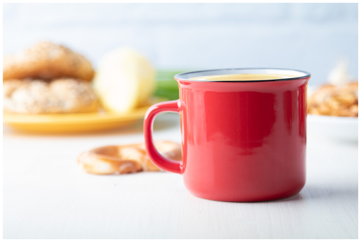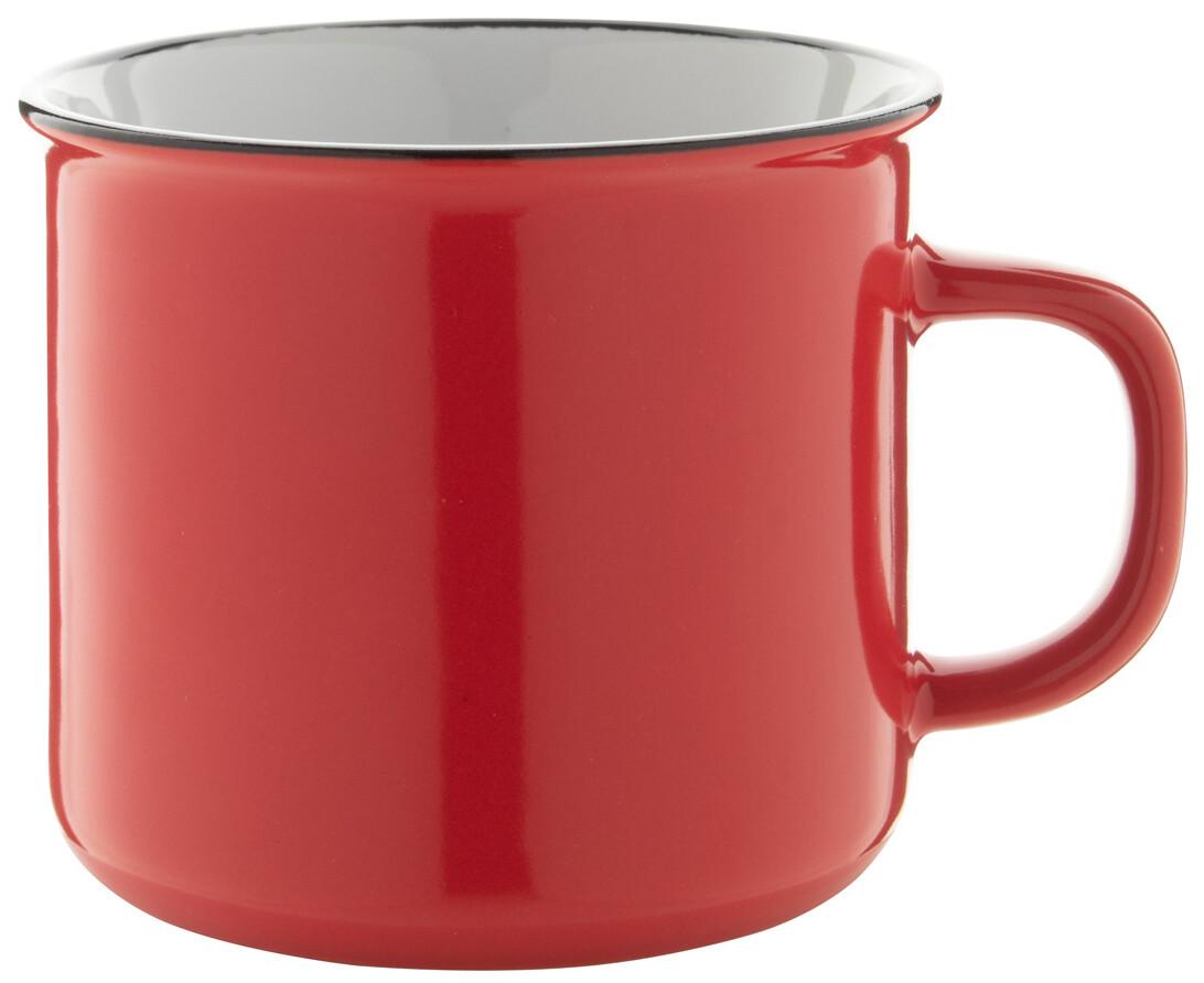 Retro barevný keramický hrnek s černým okrajem, bílým vnitřkem a barvou z venku, 300 ml, v dárkové krabičce.
