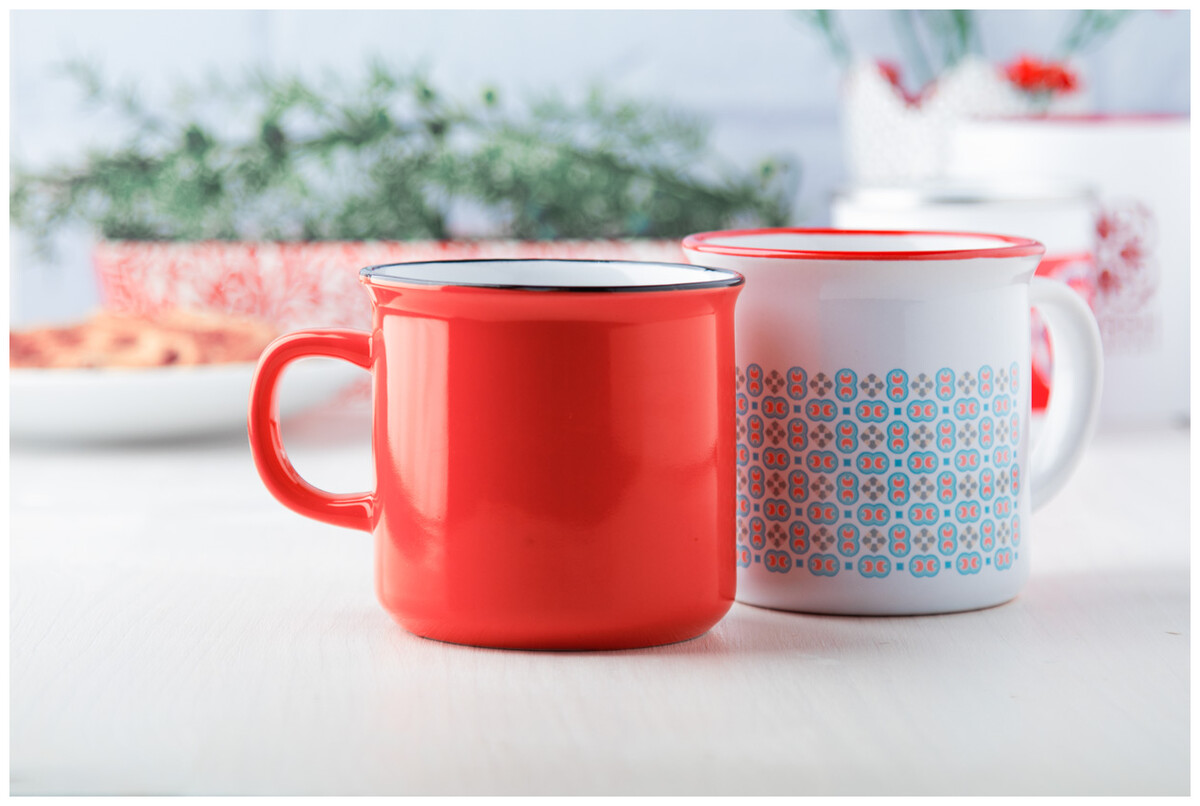 Retro hrnek Woodstock, červená, bílá