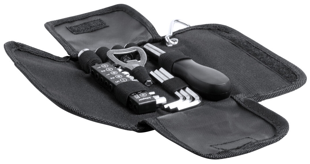 Sada nářadí, 19 dílů, v polyesterovém obalu s karabinkou.