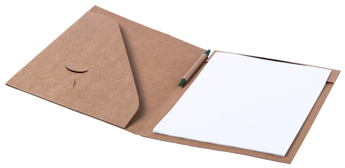 Sloha z recyklovaného papíru s 20 listým nelinkovaným blokem a kuličkovým perem s modrou náplní.