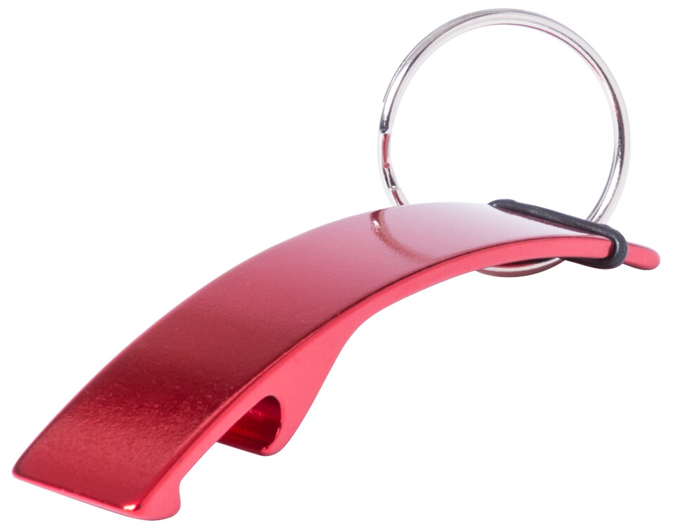 Hliníkový otvírák na lahve s přívěškem na klíče.