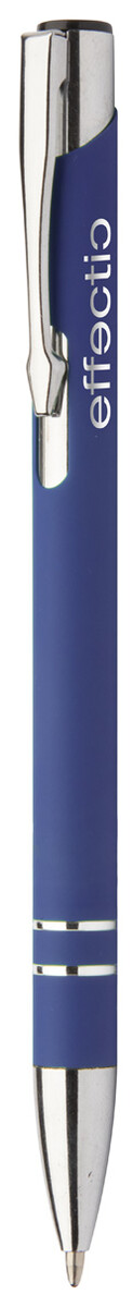 Hliníkové kuličkové pero s pogumovaným povrchem a modrou náplní. Speciální povrch pro laser stříbrného loga.