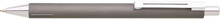 Elegantní hliníková propiska s jemně rýhovaným, šedým povrchem a stříbrnými doplňky.
