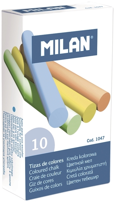 Bezprašné křídy Milan kulaté barevné, 10 kusů v krabičce.