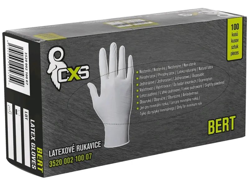 Jednorázové latexové rukavice, hmotnost 5.0 g, lehce pudřené, nesterilní, 100 ks v balení. Zdravotnický prostředek třídy I. Umožňují práci s dotykovými displeji. Doporučené aplikace: úklidové práce, lakovny, laboratoře, zdravotnictví, kosmetický průmysl.