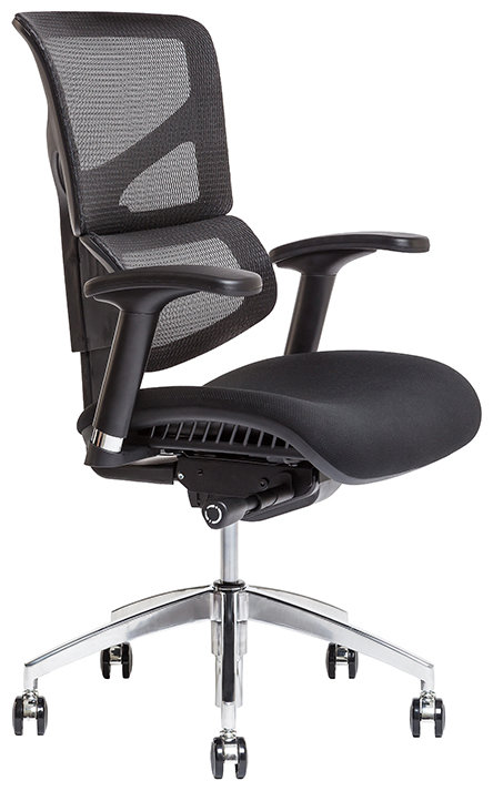 Záda židle čalouněná samonosnou síťovinou zajišťují celodenní větrání zad