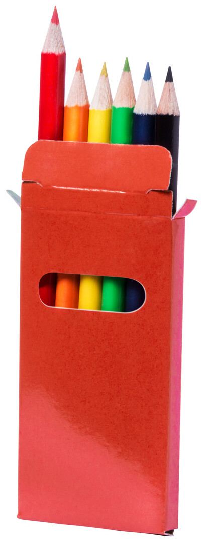 Dřevěné pastelky (6 ks) v barevné papírové krabičce.