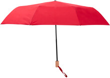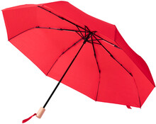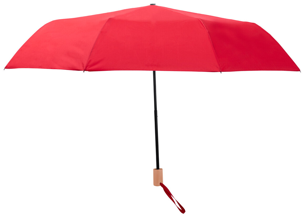 Manuální, větrudodolný skládací deštník s 8 panely ve stejně barevném pouzdře. S kovovým rámem, sklolaminátová žebra a dřevěná rukojeť. 190T RPET pongee, s etiketou s označením RPET.