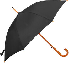 Automatický deštník s 8 panely, kovovým rámem, dřevěnou tyčkou a rukojetí. 190T RPET pongee, s etiketou s označením RPET.